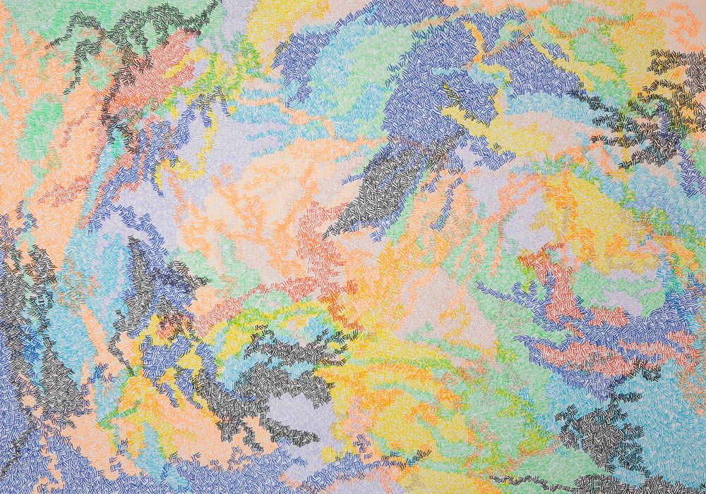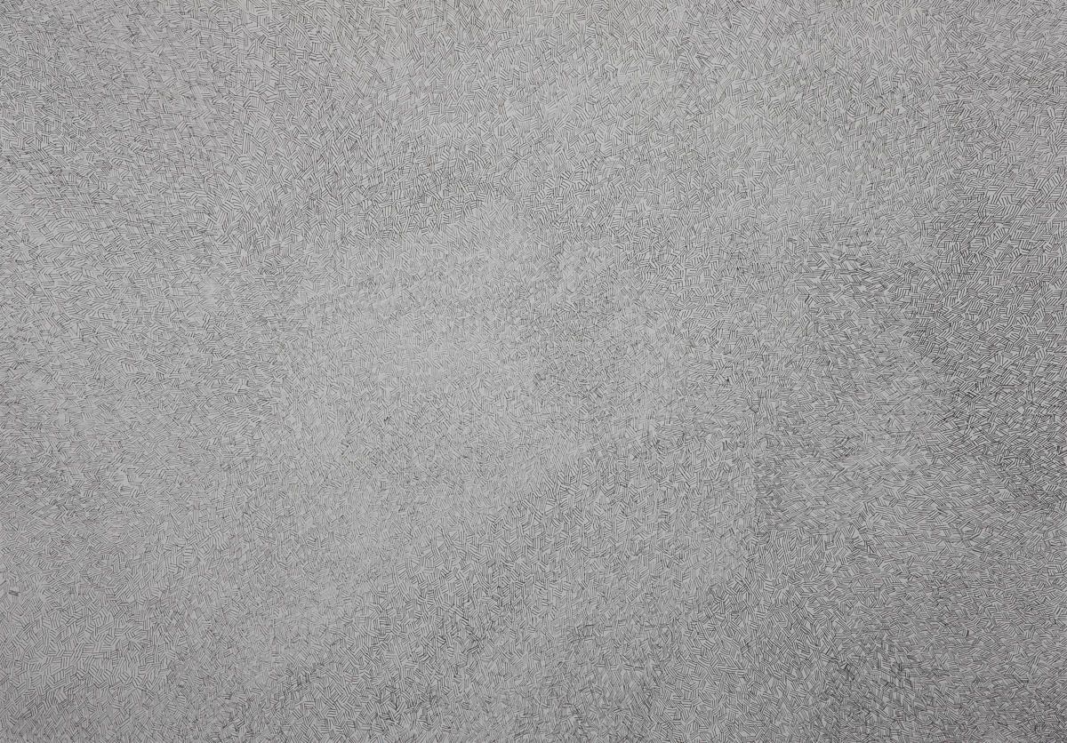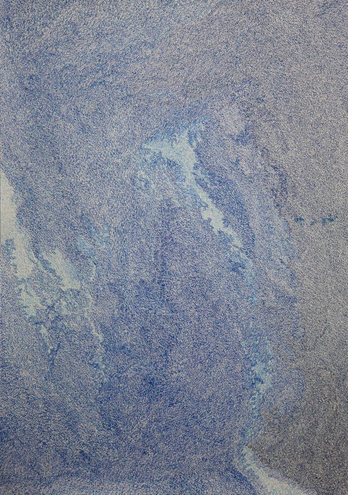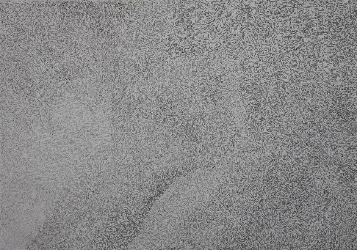 In an attempt to alleviate rumination on Covid-19, heartache and loss, repetition by marks on paper lifted anguish on a virus, love and death. Drawing became a meditative ritual facilitating an alien focus. On completion of filling an A-size sheet of paper from edge to edge, nonentity patterns configure something akin to an R-value, measuring routes of human emotions in time via marks on paper, consequently resulting in a sense of possibility and reconciliation.