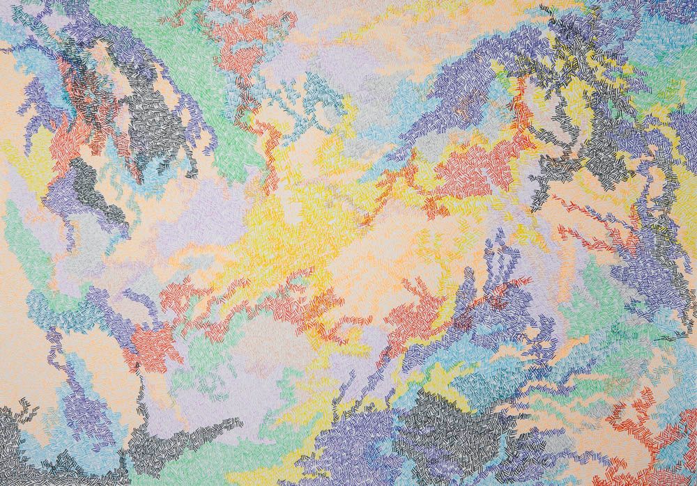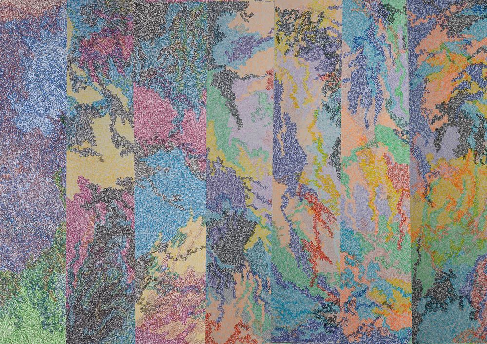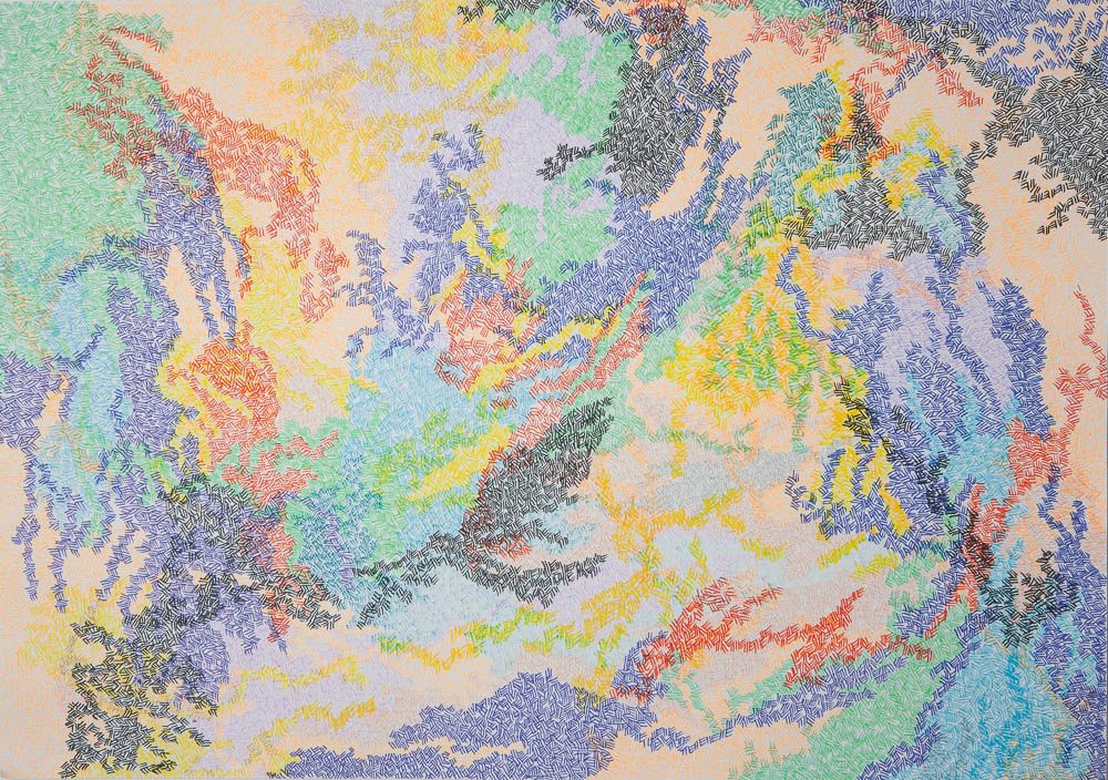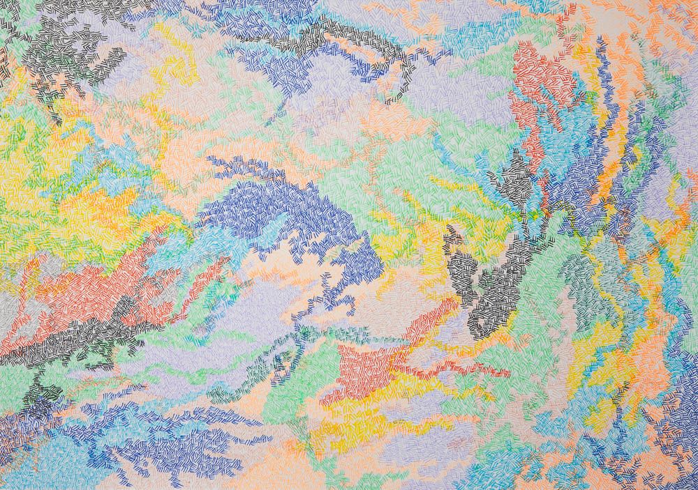 In an attempt to alleviate rumination on Covid-19, heartache and loss, repetition by marks on paper lifted anguish on a virus, love and death. Drawing became a meditative ritual facilitating an alien focus. On completion of filling an A-size sheet of paper from edge to edge, nonentity patterns configure something akin to an R-value, measuring routes of human emotions in time via marks on paper, consequently resulting in a sense of possibility and reconciliation.